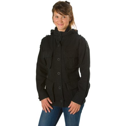 Instead of shivering out in the cold while waiting to get into the music venue, put on the DC Women's Barker Jacket. Its military-inspired styling, raised collar, and epaulet shoulder details have fans wondering if you're part of the band.