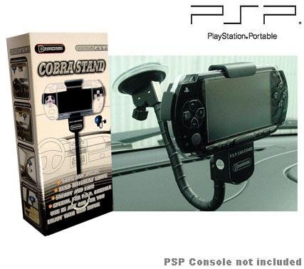 Now you can hang your Sony PSP system in your car, on your desk or table with the PSP Portable Cobra Console Stand. Manufactured with special elastic material, you can easily turn and bend the PSP Portable Cobra Console Stand to any position you want.