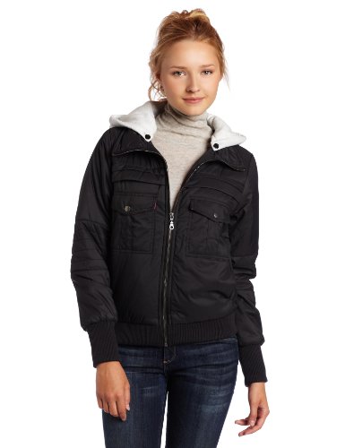 | 1 of 1 people found the following review helpful This review is from: Hurley Juniors Winston Puffer YC Jacket (Apparel) I love this jacket! It fits really nicely. I was a little worried because I often have trouble finding something in my size that isn't too tight in the bust (I'm a C-cup), but this jacket is great. Leaves enough room to be comfortable, but not so much that it is unflatteringly baggy.One thing is that the pink lining on the inside of the pocket flaps is a little more pronounced than you can see in the photo, but I like it. This jacket is light enough that it's good for cool days, and warm enough that on cold days I just wear a sweater underneath and I'm good. The jersey hood is quite substantial and kind of heavy, so I took it off. It buttons on, so you have the choice. I definitely recommend this jacket. |