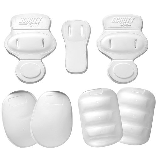 The Schutt Y7PSL Lightweight Youth 7 Piece Slotted Football Pad Set includes a pair of slotted hip pads, a slotted tailbone pad, two thigh pads, and a pair of molded knee pads.