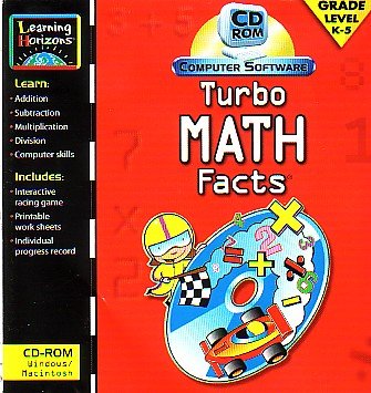 TURBO MATH FACTS builds math skills as children add, subtract, multiply and divide their way past the finish line in record time. Proven learning concepts team up with fun, motivating activities that inspire children to practice basic math facts over and over again. Review principles help children improve their speed and accuracy in recalling math facts both on and off the track! Compatible with both Windows 95 or later and Macintosh System 7.0 or later.